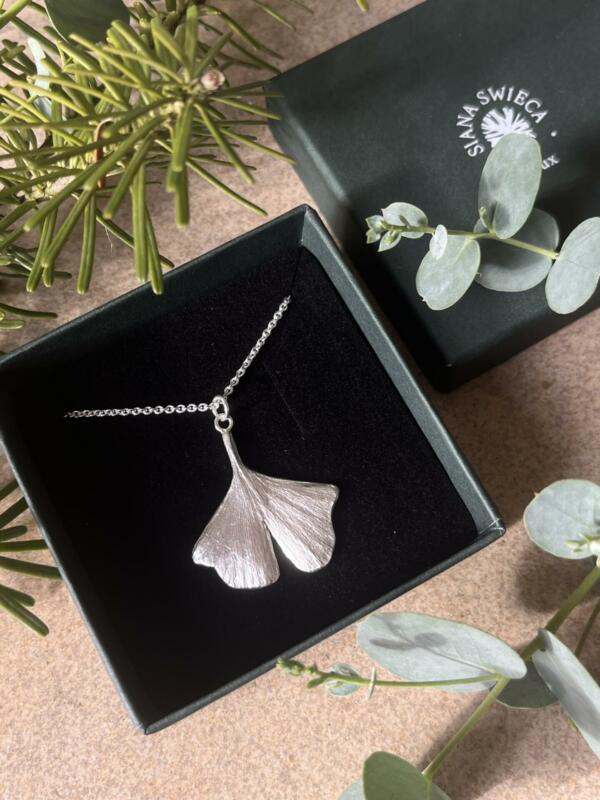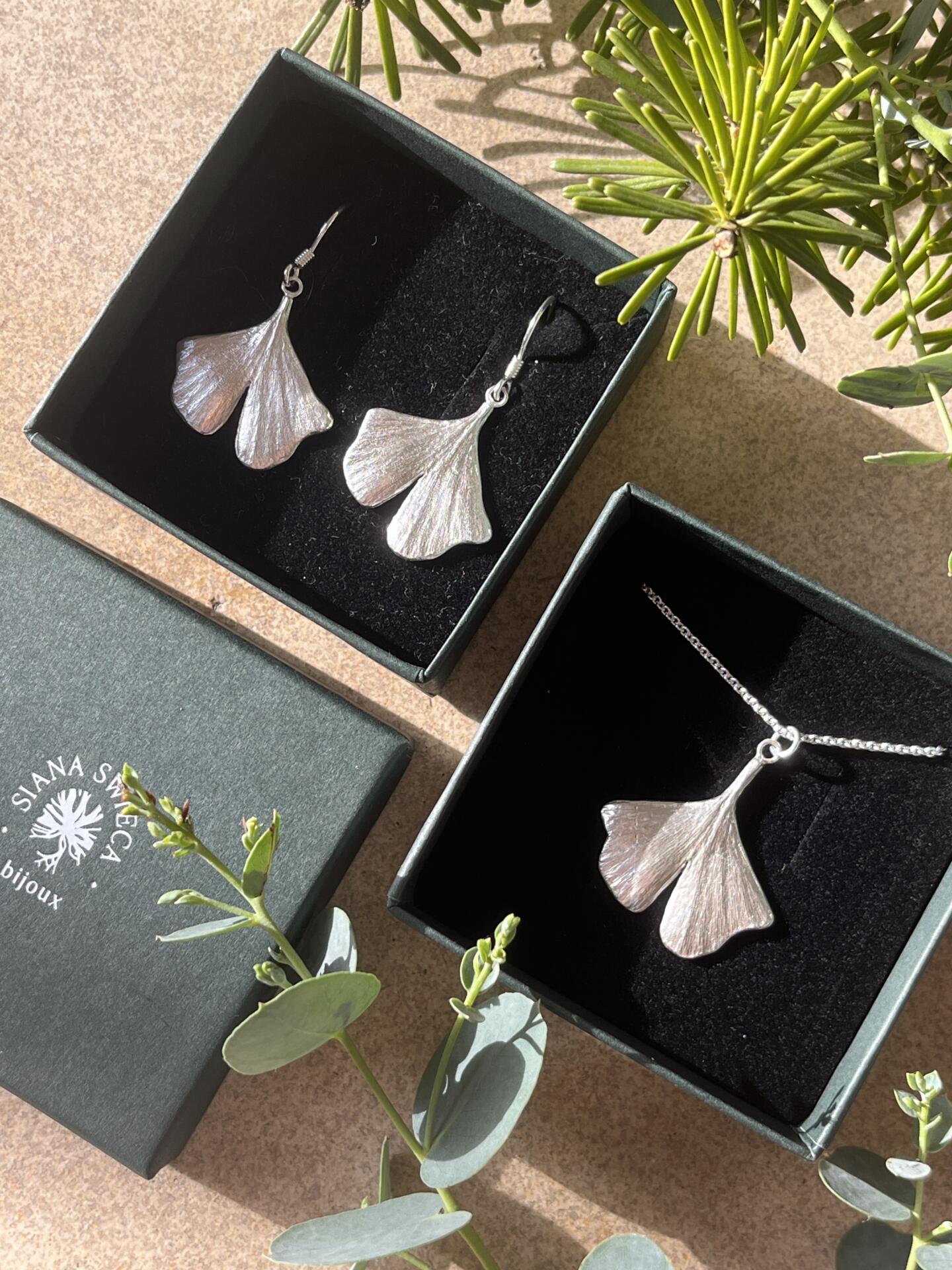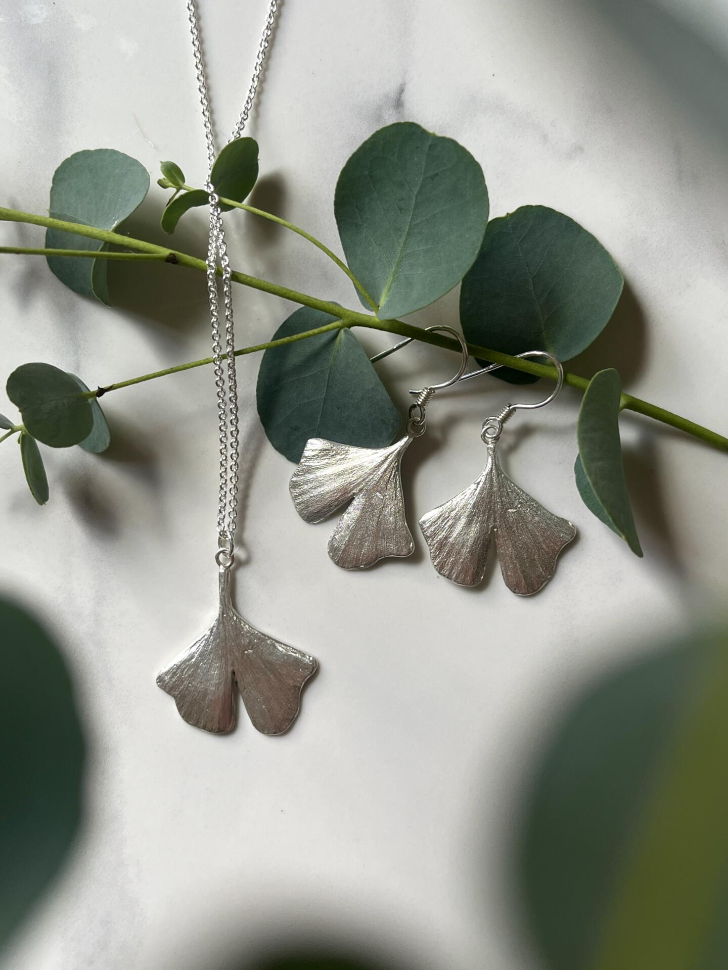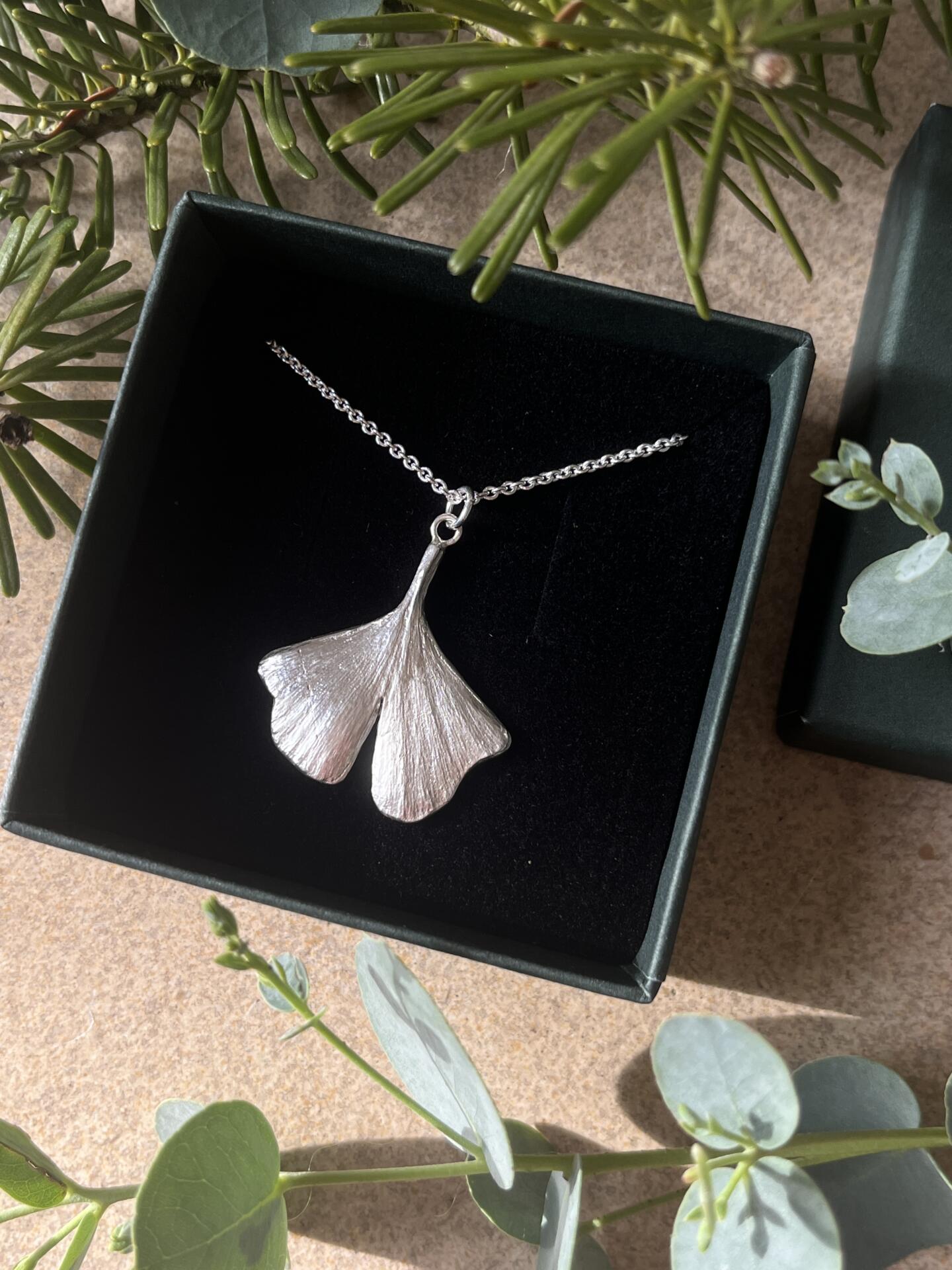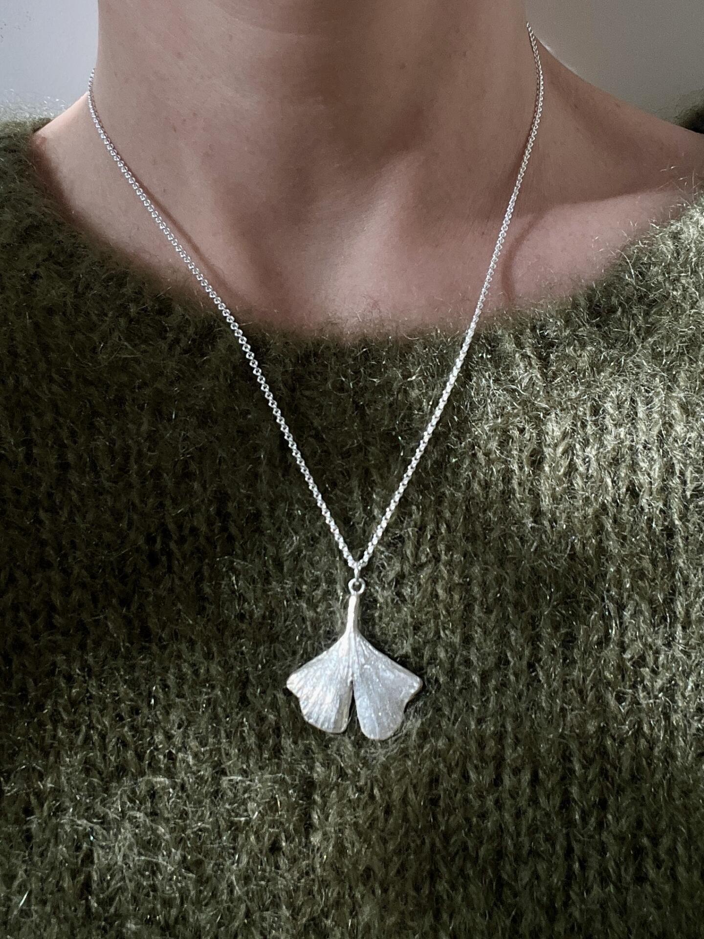► Collier réglable en argent 925 recyclé, réalisé à la main dans mon atelier à partir de l’empreinte d’une vraie feuille de Ginkgo